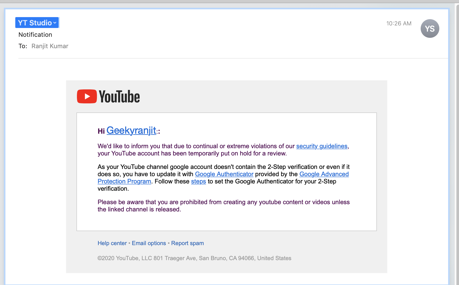 Ranjit On Twitter New Type Of Scam Youtube Creators Teamyoutube Beware Don T Panic And Don T Click On These Links Just Got This Email Check The Domain It S Fake Youtube Whenever You Get - Updates to email notifications on youtube.